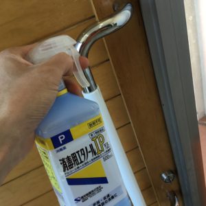 消毒を徹底しております。お客様が触れる可能性のドアノブ、お座りいただく椅子やテーブルなど、
